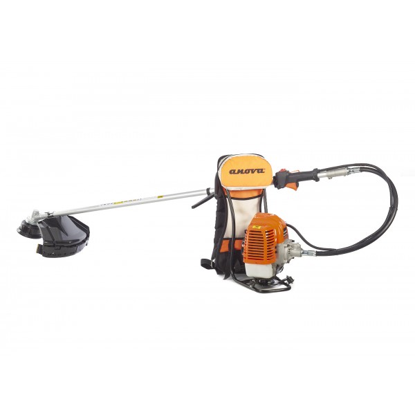 A roçadora D521M está montada sobre uma mochila acolchoada com bolsos porta-velas.